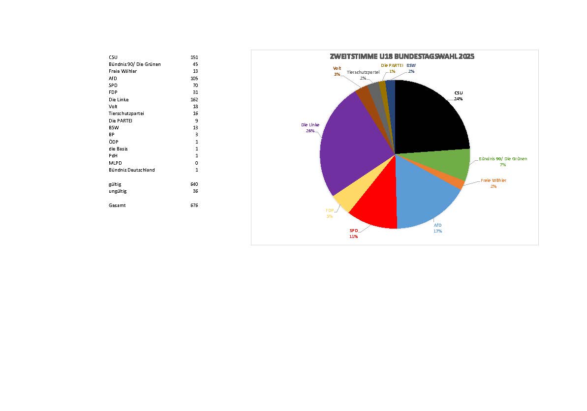 Durch die Wahlergebnisse wird sichtbar, wie eine von Jugendlichen gewählte Regierung aussehen würde. Durch die U18-Bundestagswahl konnten die Jugendlichen in Stadt und Landkreis Bayreuth aber vor allem den Prozess des Wählens ausprobieren und sich dadurch auf die echten Wahlen vorbereiten. Die bundesweiten Wahlergebnisse werden am 17. Februar unter u18.bayern/ergebnisse veröffentlicht. Sie können als Signal der Jugend an die erwachsenen Wähler verstanden werden.